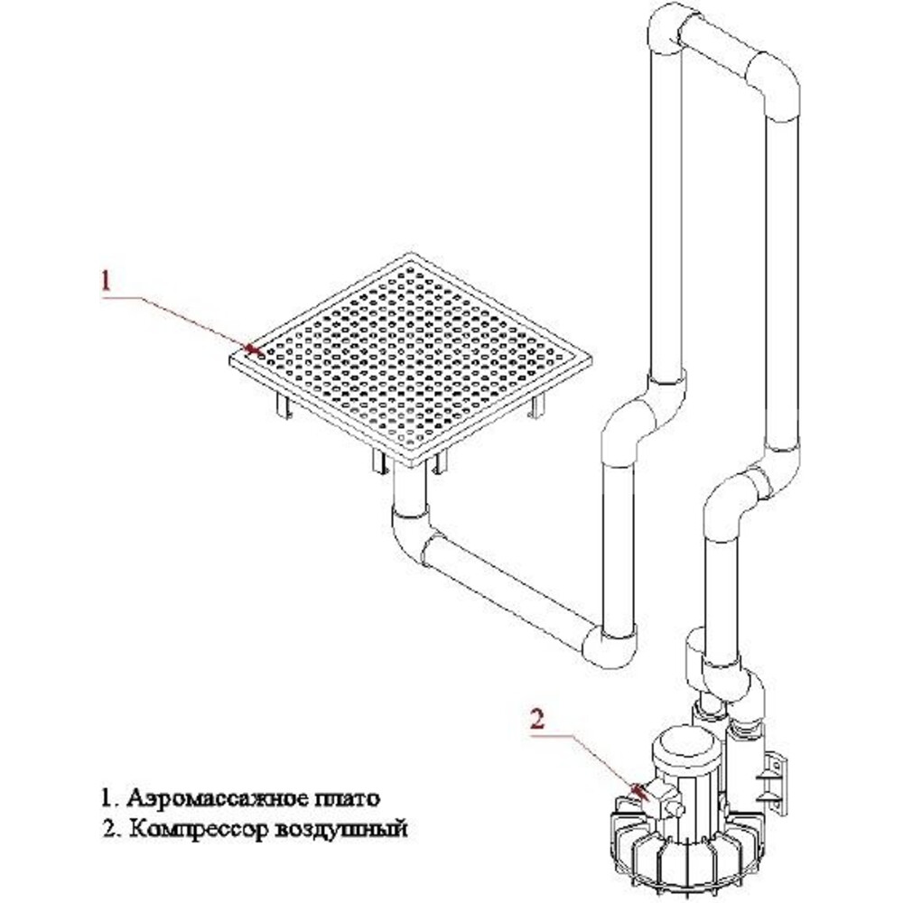 Аэромассажное плато предназначено для осуществления массажа по средству пузырьков возудуха, которые нагнетаются специальным компрессором, см. этот же раздел - компрессоры низкого давления. Пропускная способность плато должна быть равна производительности компрессора, при увеличении и снижении производительности компрессора, будет увеличиваться или снижаться поток воздуха. Установка ниже 1,5 метров в толщу воды снижает уровень потока.
