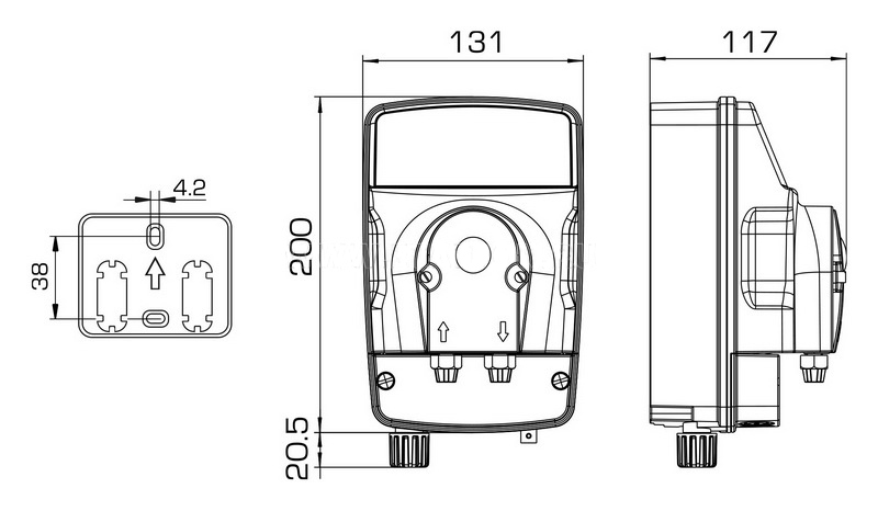 eMyPOOL – новое поколение компактных станций дозирования и контроля для частных плавательных бассейнов, объемом до 150 м3. Перистальтические насосы со встроенным контроллером уровня рН или RX (на выбор). Универсальное входное напряжение 100-250V (для моделей 2-2 и 3-3). Цифровой дисплей с подсветкой. Электронное управление. Диапазоны измерений: 6,8÷7,8 рН; -300÷+900 mV. Пропорциональный режим дозирования – новая микроэлектронная технология, работающая в реальном времени: частота включения/выключения насоса замедляется, по мере приближения к заданной Точки Уставки. Встроенная система контроля дозирования: по времени и объему! Автоматическая система калибровки и проверки датчиков! Производительность насоса: от 1.5 л/ч до 3 л/ч, противодавление до 3 бар. Задержка запуска насоса. Поддержка датчика уровня реагента и датчика потока (датчик потока не входит в комплект поставки). Релейный выход ON/OFF аварийной сигнализации по времени беспрерывной дозации.