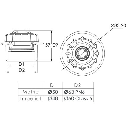 Форсунка стеновая под бетон (клей д63 мм) EM4409. Изготовлена из ABS-пластика.