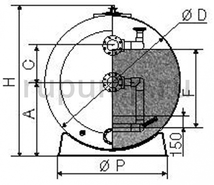 Фильтр песочный для общественных бассейнов Pool King серия HL с обвязкой 1600 х 3000мм, 123 куб.м/час, подкл.6", выс. 1м