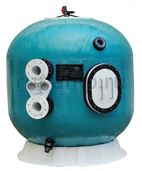 Данная модель песочного фильтра китайского производителя Pool King относится к фильтровальным системам шпульной навивки. Применяется для очистки воды в общественных бассейнах, крупных аквапарках и рекреационных зонах с открытыми бассейнами большой площади. Фильтр работает без изменения продуктивности в худшую сторону при температуре воды до 50 градусов тепла. В комплекте идёт сопловый коллектор. Также возможна комплектация классической коллекторной системой трубчатого типа. Учитывая большой объем песка – полторы тонны, производители позаботились о его равномерном распределении на этапе очистки. Это достигается благодаря большому промежутку между поверхностью песчаного наполнителя и диффузором. Песок следует выбирать двух фракций: 0,5 – 1 мм и 1-3 мм. Таким образом осуществляется двухступенчатая механическая грубая очистка.