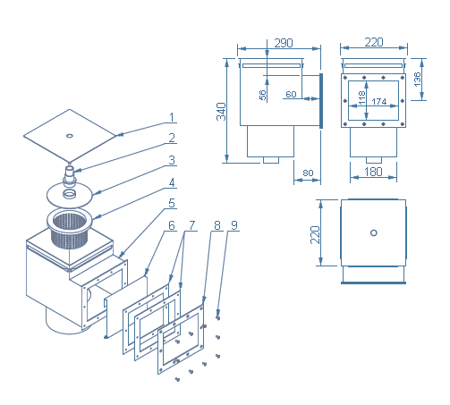 Скиммер универсальный из нержавеющей стали АТ 05.06 Акватехника компакт, 2" вн., с переливом Скиммер универсальный из нержавеющей стали АТ 05.06 Акватехника компакт, 2" вн., с переливом